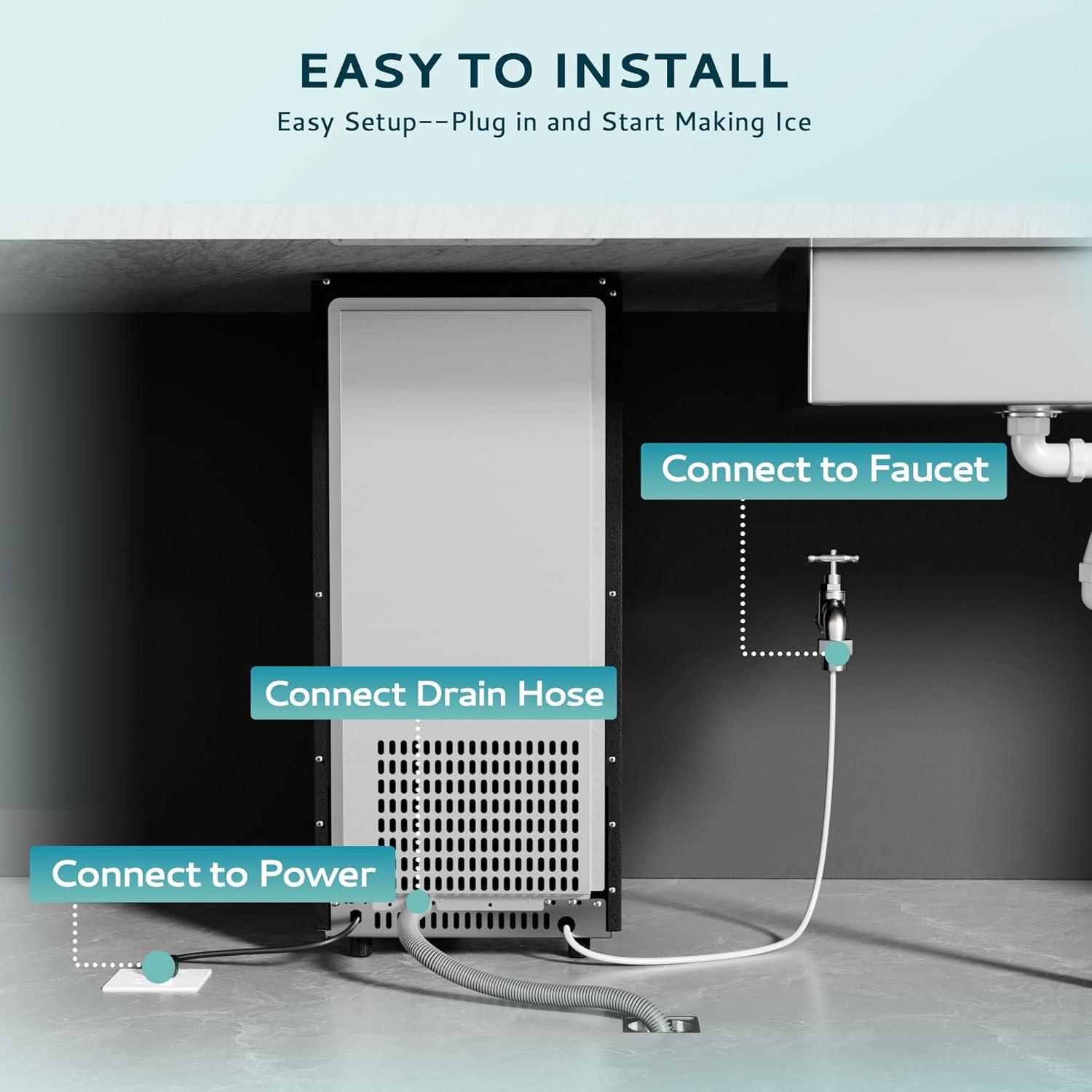 Compact Design: The built-in design with dimensions of 14.96 x 18.47 x 33.99 inches (including adjustable feet) makes it perfect for any standard height kitchen or bar counter, while also allowing the ice maker to be used as a standalone unit.