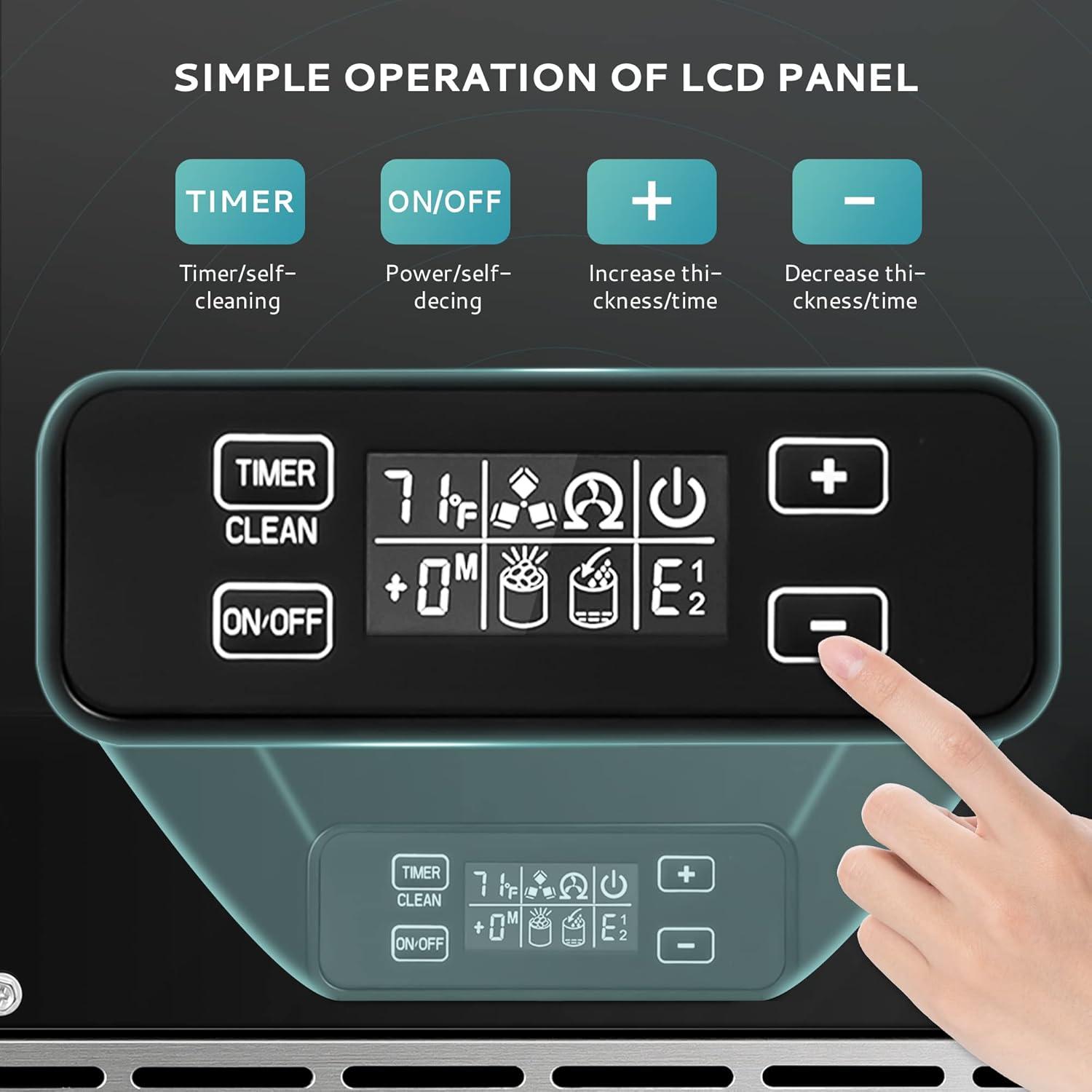 Smart LCD Control Panel & Customizable Ice Thickness: The multifunctional control panel displays the ambient temperature and allows you to adjust the ice cube size by changing the ice-making time. The 24-hour timer function lets you set the machine to start or stop running at your convenience.