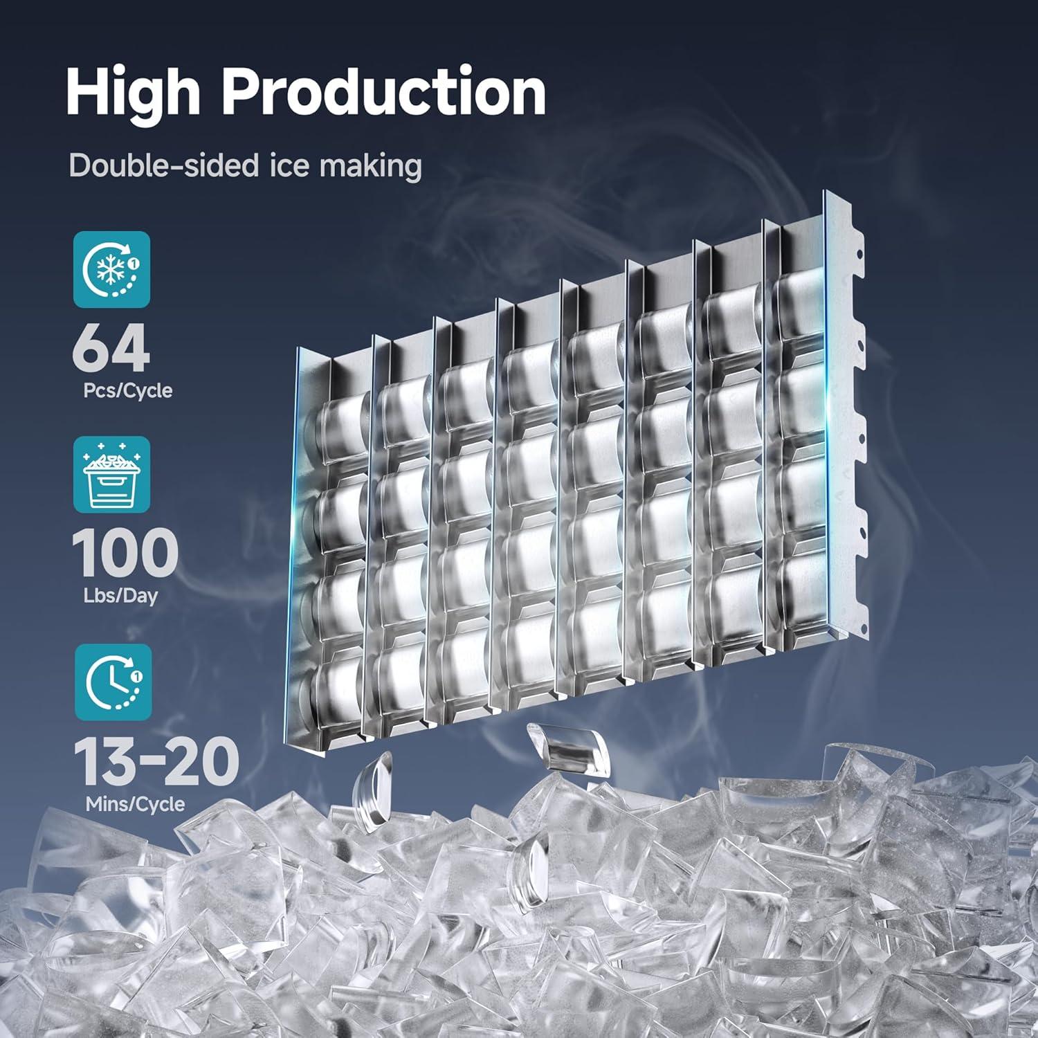 EUHOMY Commercial Ice Maker Machine, 150lbs/24H Stainless Steel Under Counter ice Machine with 33lbs Ice Storage Capacity, Freestanding Ice Maker.(100lbs/24H)