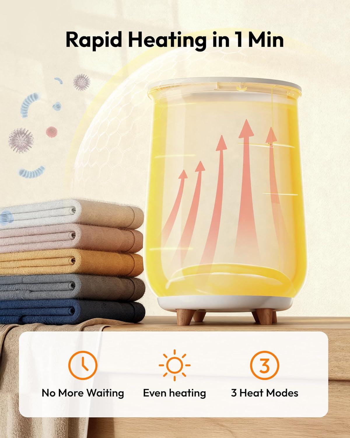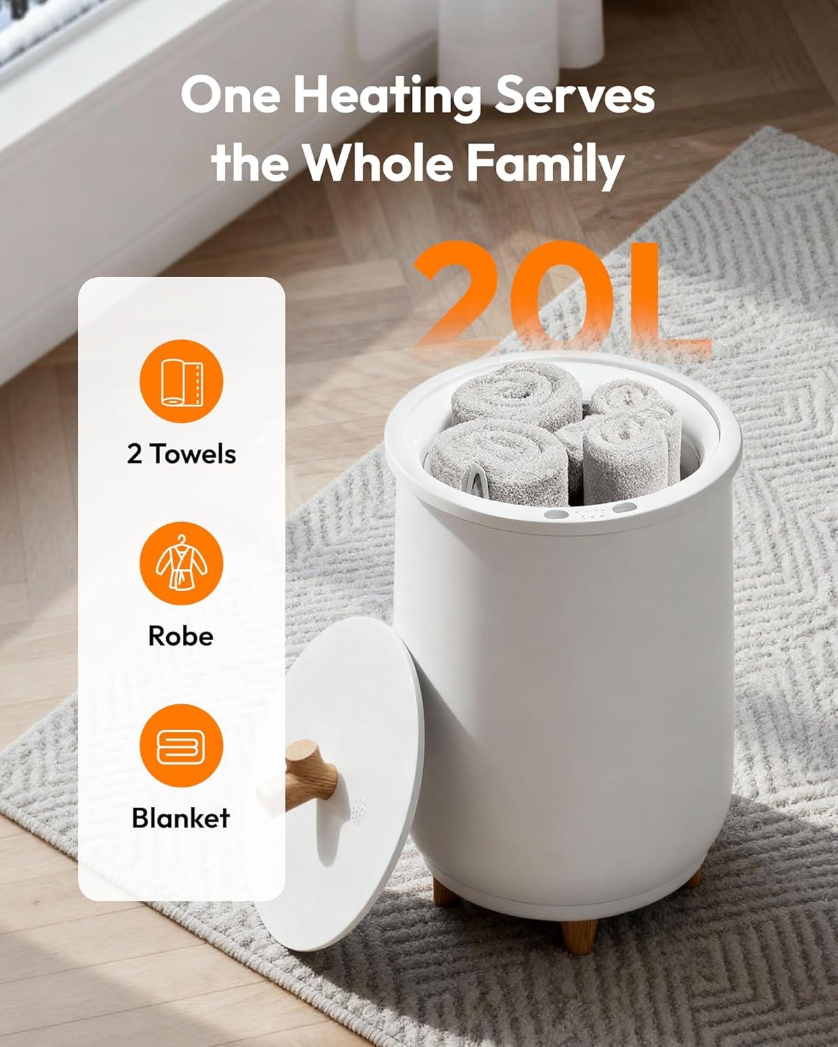 Spacious Capacity: With an interior size designed for oversized bath towels and blankets, this large 20L bucket towel warmer is ideal for family bathrooms. Wrap yourself and your loved ones warmth within seconds after every shower.