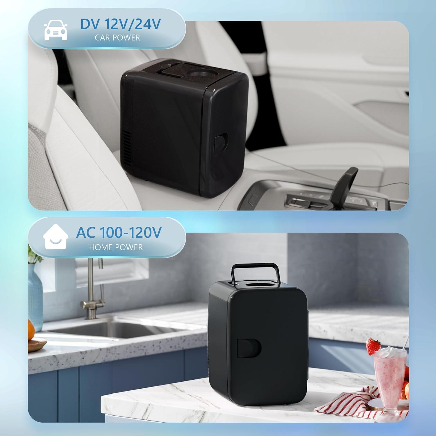Home & Car Use: Designed for both home and car use, this makeup fridge for skincare includes an AC power cord and a DC car power cord. Compact at 10 x 10 x 8 inches, it holds up to six 12-ounce soda cans, making it perfect for on-the-go hydration and skincare storage